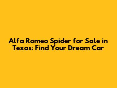 Finding an Alfa Romeo Spider for sale in Texas can be an adventure, but with a bit of patience and diligence, you can find the perfect car to enjoy for years to come. Happy hunting, and remember to enjoy the ride!