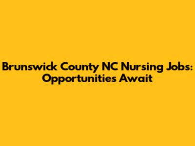 Brunswick County NC Nursing Jobs: Opportunities Await