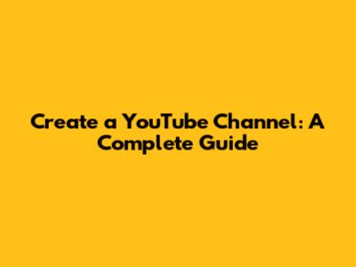 Create A YouTube Channel: A Complete Guide