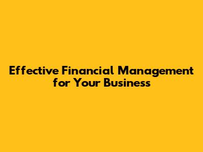 Effective Financial Management For Your Business