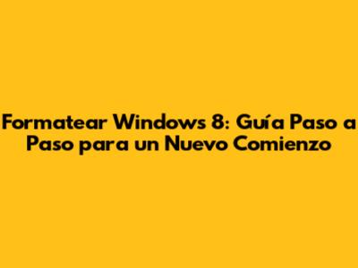 Formatear Windows 8: Guía Paso A Paso Para Un Nuevo Comienzo