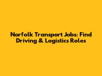 Norfolk Transport Jobs: Find Driving & Logistics Roles