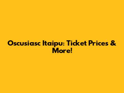 Oscusiasc Itaipu: Ticket Prices & More!