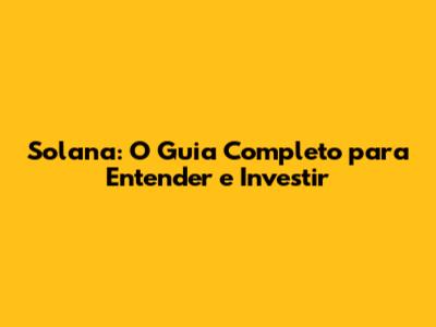 Solana: O Guia Completo Para Entender E Investir