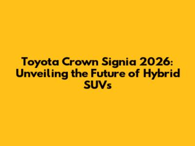 The Toyota Crown Signia 2026 is shaping up to be a remarkable addition to the SUV market. Its blend of hybrid efficiency, luxurious design, advanced technology, and comprehensive safety features makes it a strong contender for those seeking a premium and sustainable driving experience. As we approach its release, the Crown Signia represents Toyota's commitment to innovation and excellence in the automotive industry. So, buckle up and get ready for a new era of driving!