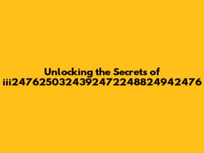 Unlocking The Secrets Of Iii2476250324392472248824942476