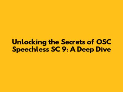 Unlocking The Secrets Of OSC Speechless SC 9: A Deep Dive