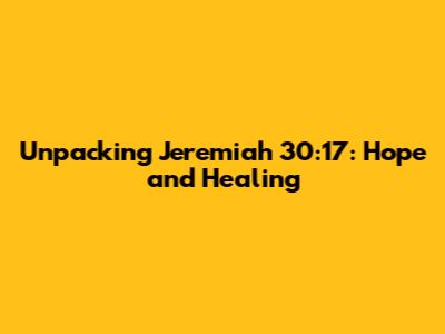 Hey guys! Ever stumbled upon a verse in the Bible that just kinda jumps out at you? For me, Jeremiah 30:17 is one of those verses. It's packed with so much meaning, comfort, and hope. So, let's dive in and unpack it together, shall we? We'll explore the context, different interpretations, and why it still resonates with us today. Trust me; it's worth the journey!